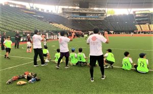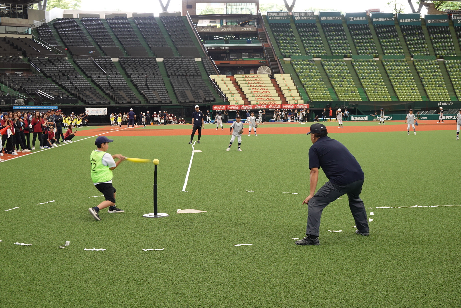 同時に開催された**「幼少期ベースボール原体験プロジェクト」**にも、たくさんのちびっ子が参加し、野球の楽しさに触れました。