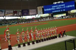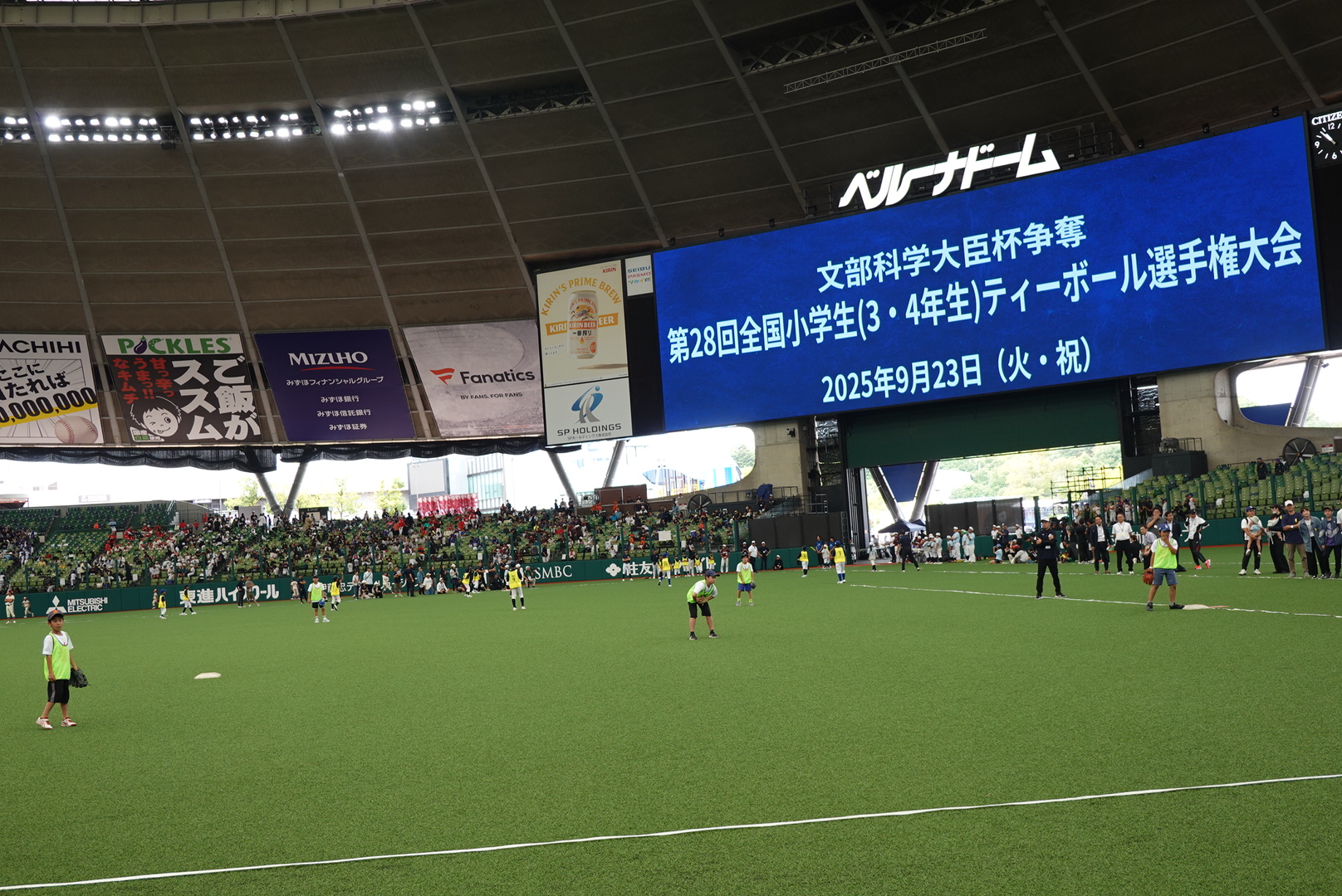 文部科学大臣杯争奪 第28回全国小学生(3・4年生)ティーボール選手権大会が、埼玉西武ライオンズの本拠地であるベルーナドームで開催されました。